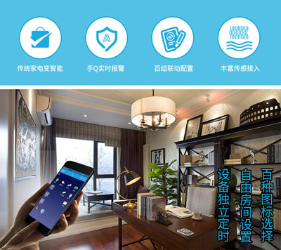 通過(guò)智能家居手機(jī)頁(yè)面將樓宇對(duì)講系統(tǒng)所附ID添加到智能家居系統(tǒng)中即可完成關(guān)聯(lián)。智能家居手機(jī)頁(yè)面不需要下載APP,只需QQ關(guān)聯(lián)智能家居主機(jī),然后登錄QQ找到設(shè)備即可使用,操作方便,各種場(chǎng)景隨意設(shè)置。