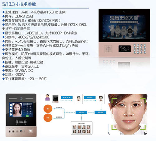 5/7/13.3寸人臉識別:極致的刷臉體驗,克服光照敏感,準(zhǔn)確率99.9%。