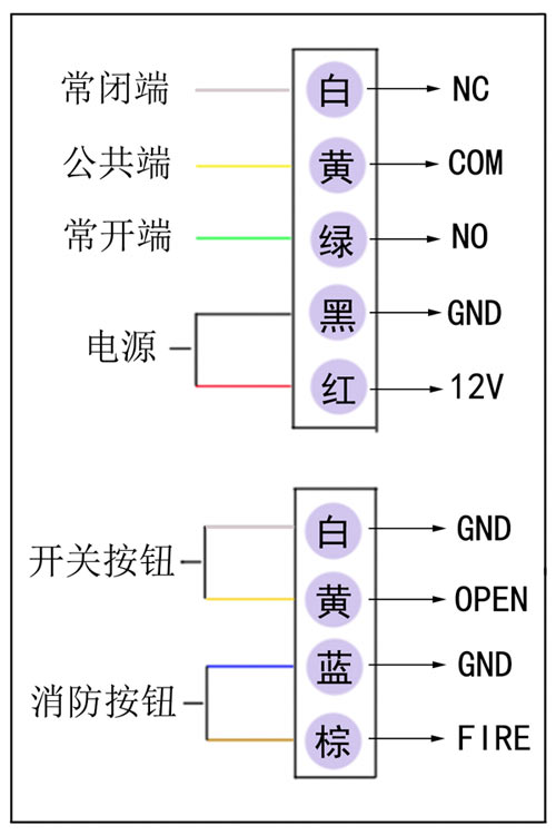 三、指紋門禁機接線說明(底蓋安裝是標準86底盒的尺寸)